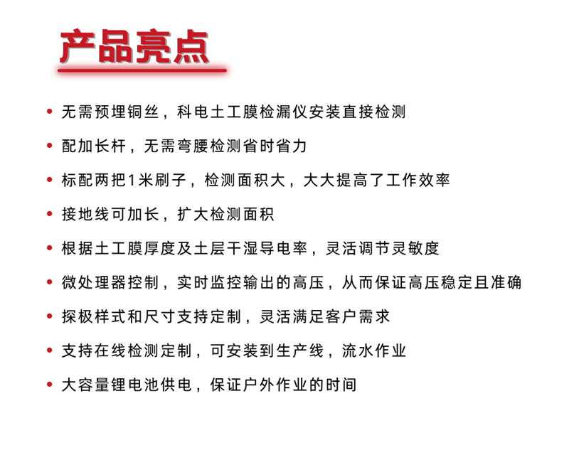 KODIN 7DJ电火花法土工膜泄漏检测仪操作方法:(HDPE膜上不能有积水杂物,保持清洁干燥)